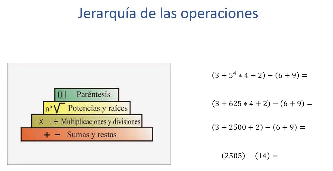Intenta resolver los ejercicios anteriores apoyandote de la jerarquia mostrada, recuerda que la piramide tiene un orden de priordad de arriba hacia abajo.