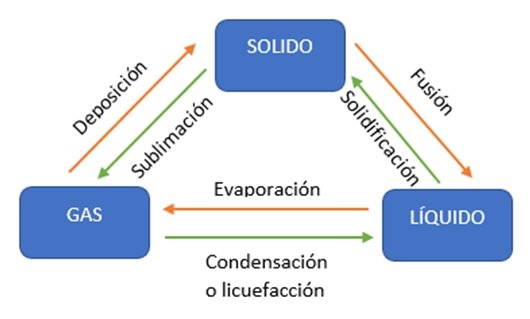 | Estados de la materia | Sólido | Líquido | Gaseoso |